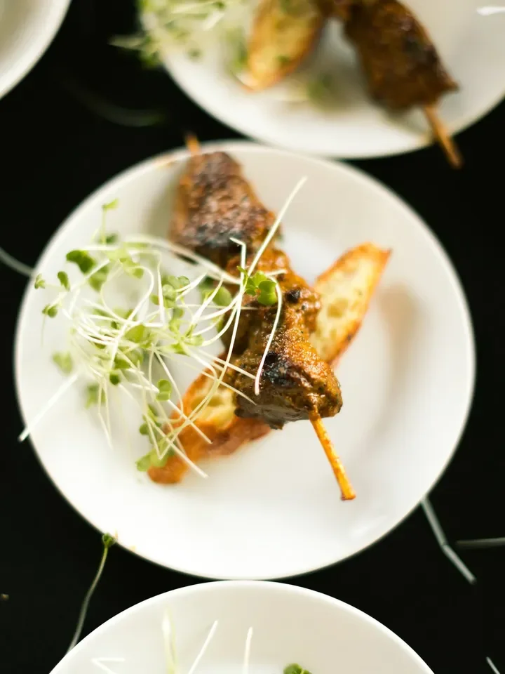 Local and organic lamb skewers made with Moroccan style seasoning.