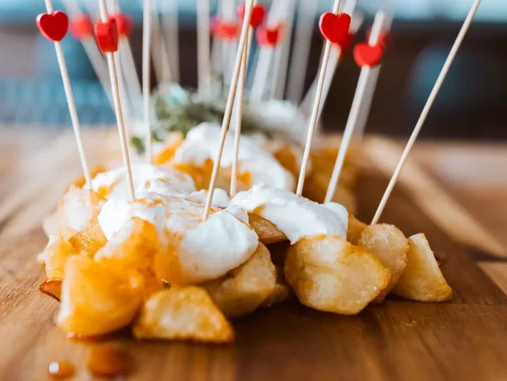Chicken, shrimp, mushrooms, serrano ham, Spanish chorizo or local salmon. Served on a bed of homemade aioli. The oil that we use for frying is also extra virgin olive oil.