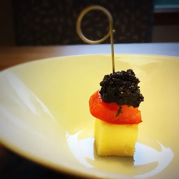 Semi cured cheese from Minorca, winner for 5 consecutive years best cheese in the world. Served with candied tomatoes and black olive caviar