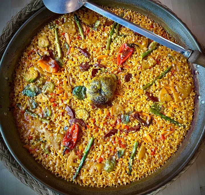 A fusion of organic and local vegetables cooked together with an excellent quality Valencia rice in a homemade vegetable broth